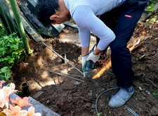Так как клиент отказался от наземного покрытия, маскируем бетонный каркас землёй.