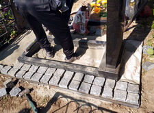 Ремонт покосившего памятника и оформление цветника брусчаткой