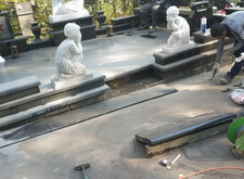Основная наша задача на данном объекте – реставрация места захоронения и подготовка его к зиме. Помимо этого, клиент попросил немного приподнять уровень примыкающего к месту захоронения покрытия, так как на кладбище была построена дорога и в нише между участком и проезжей частью начала скапливаться влага и различная грязь.